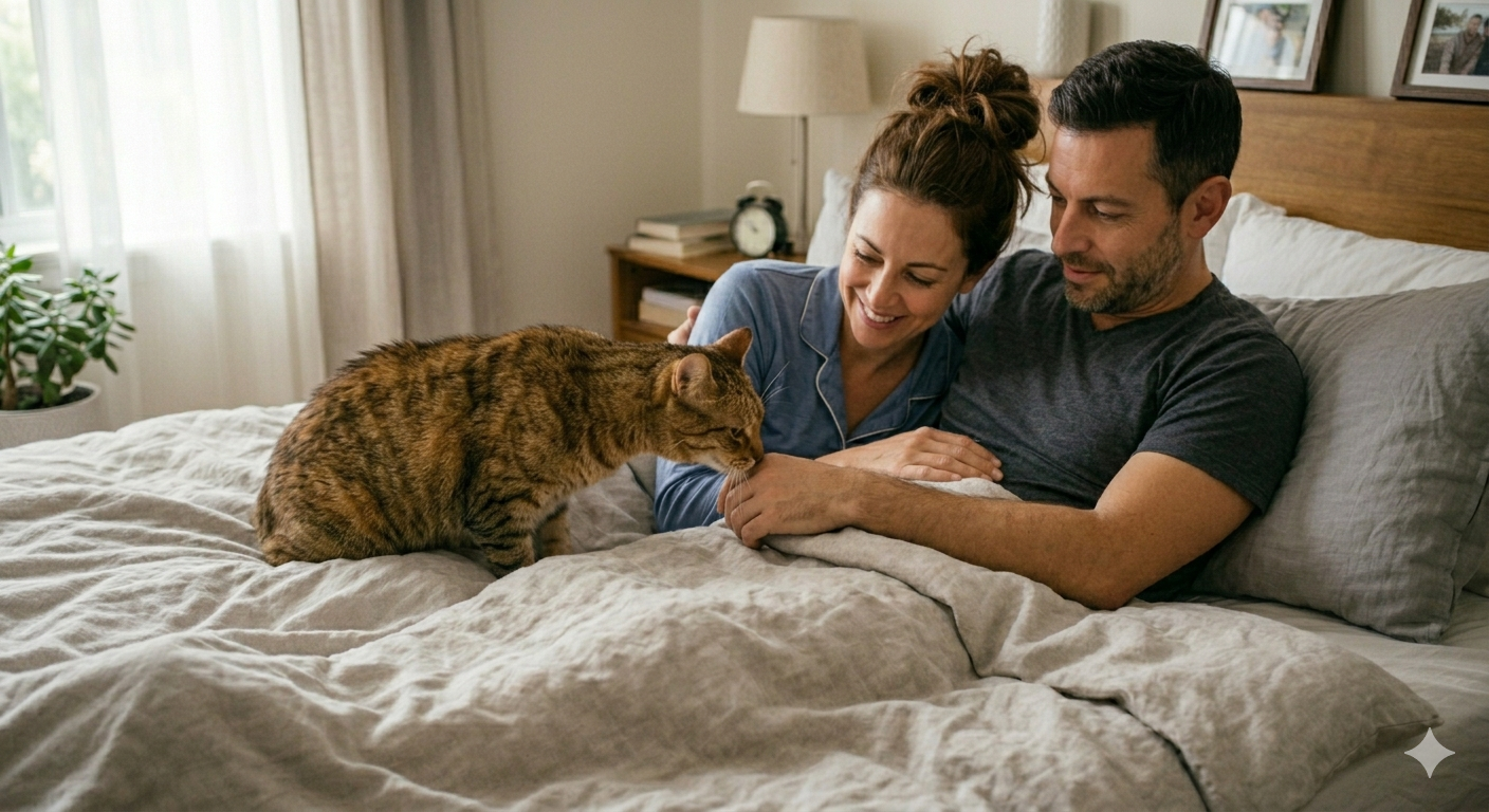 Gatto nel letto e partner: come gestire la notte senza stress