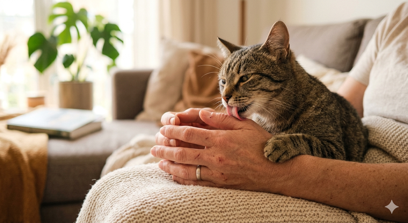 Il mio gatto ha iniziato improvvisamente a leccarmi le mani in modo ossessivo, dovrei preoccuparmi?